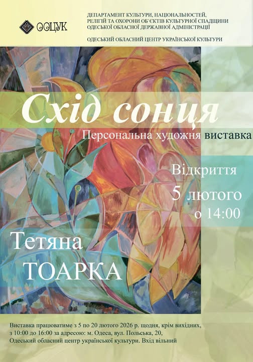 25 квітня о 14.00 у виставковій залі Одеського обласного центру української культури відбудеться відкриття виставки робіт студентів Освітньої професійної програми «Художнє оформлення» Одеського художнього фахового коледжу